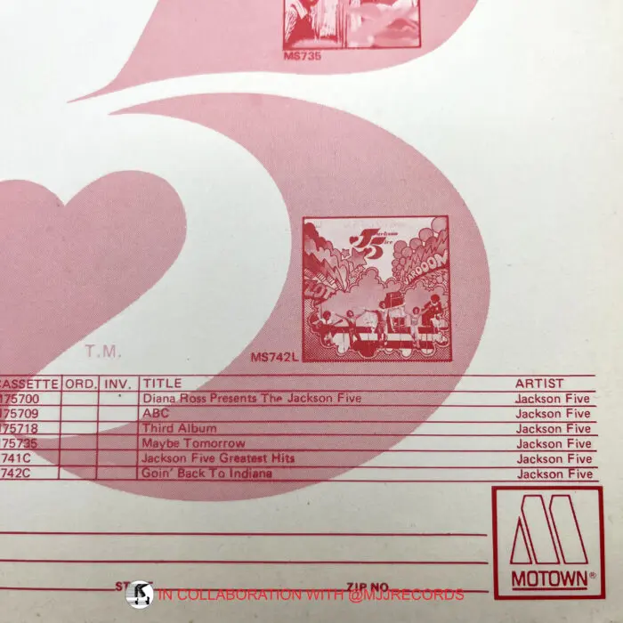 Jackson 5 ‘MOTOWN CATALOG’ Promo Order Sheet
