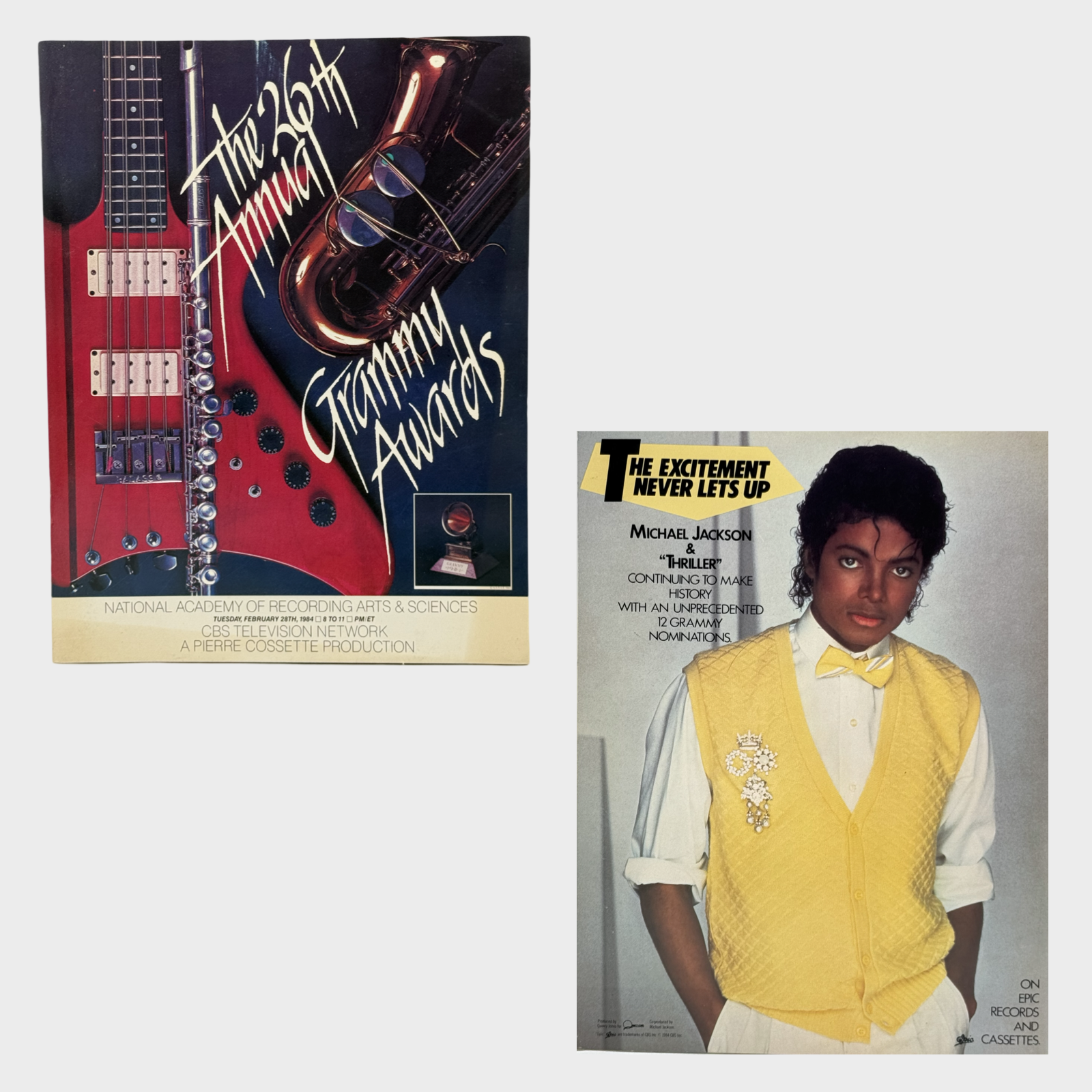Item Description: Original program from the 26th annual Grammy Awards where Michael Jackson won a record 8 awards