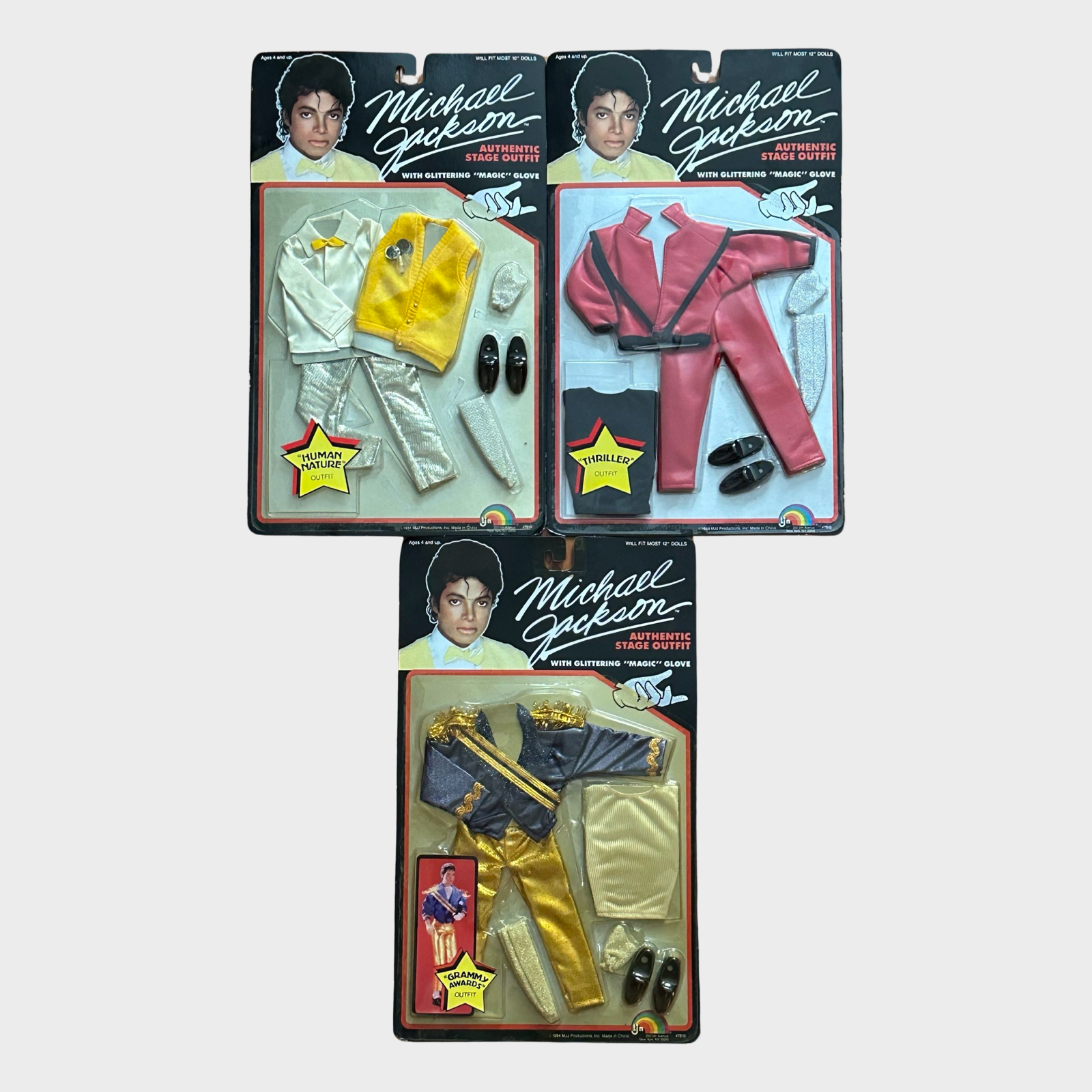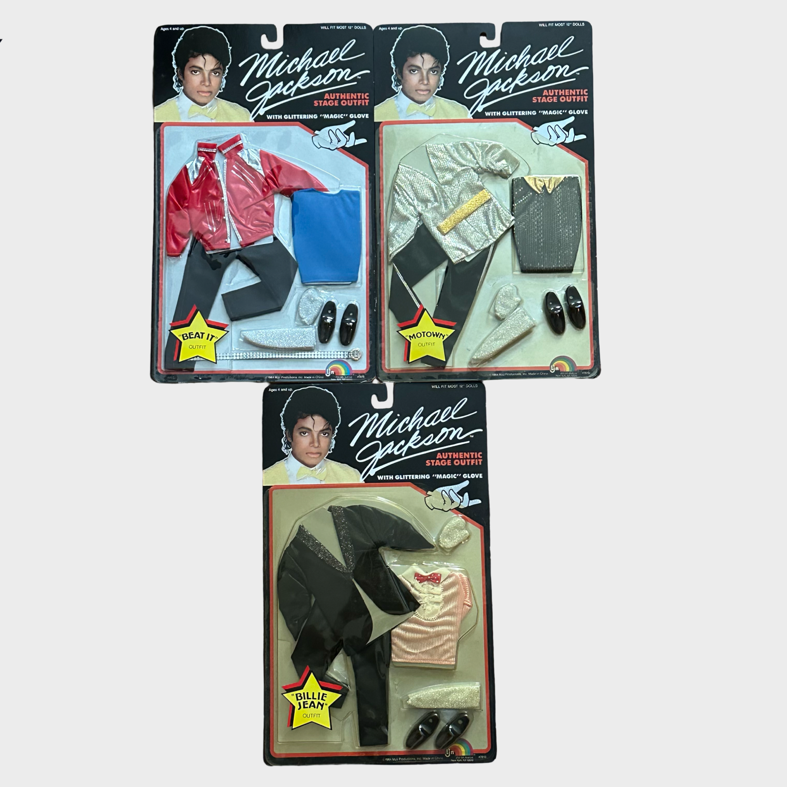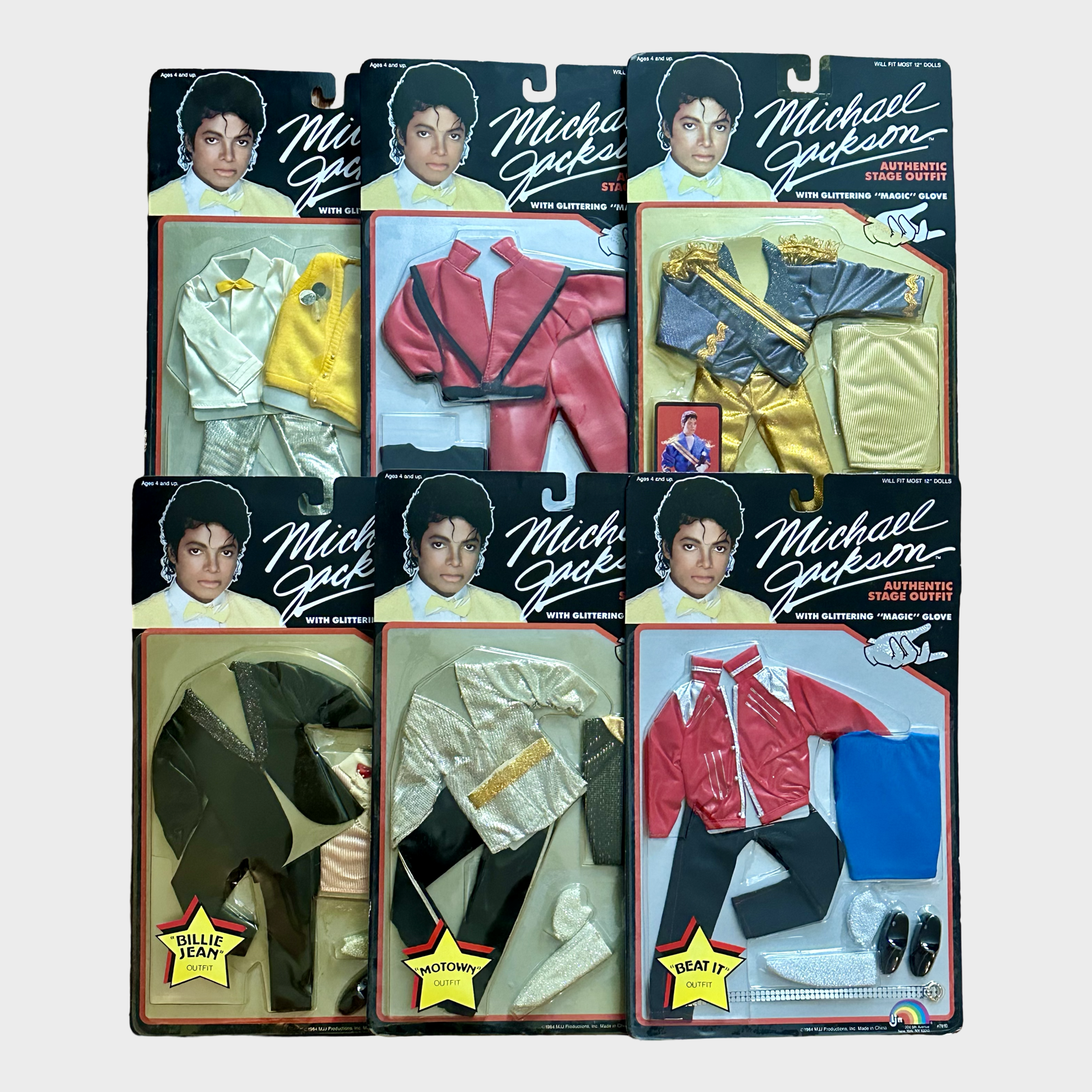 Description: Includes all 6 original doll outfits; Thriller, Human Nature, Grammy Awards, Beat It, Motown and Billie Jean.