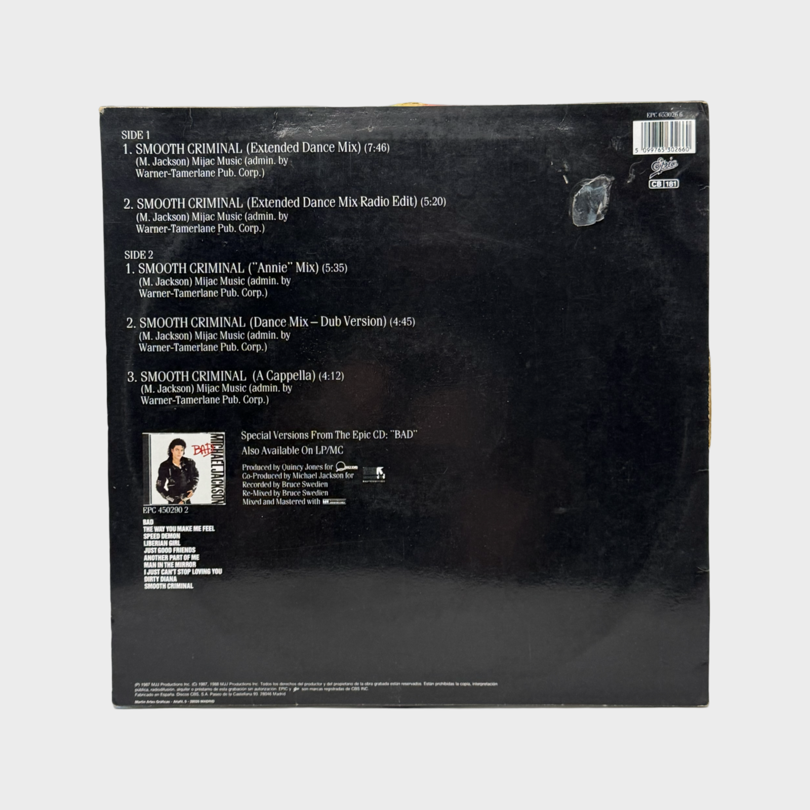 Michael Jackson Smooth Criminal 12″ Single (Spain)