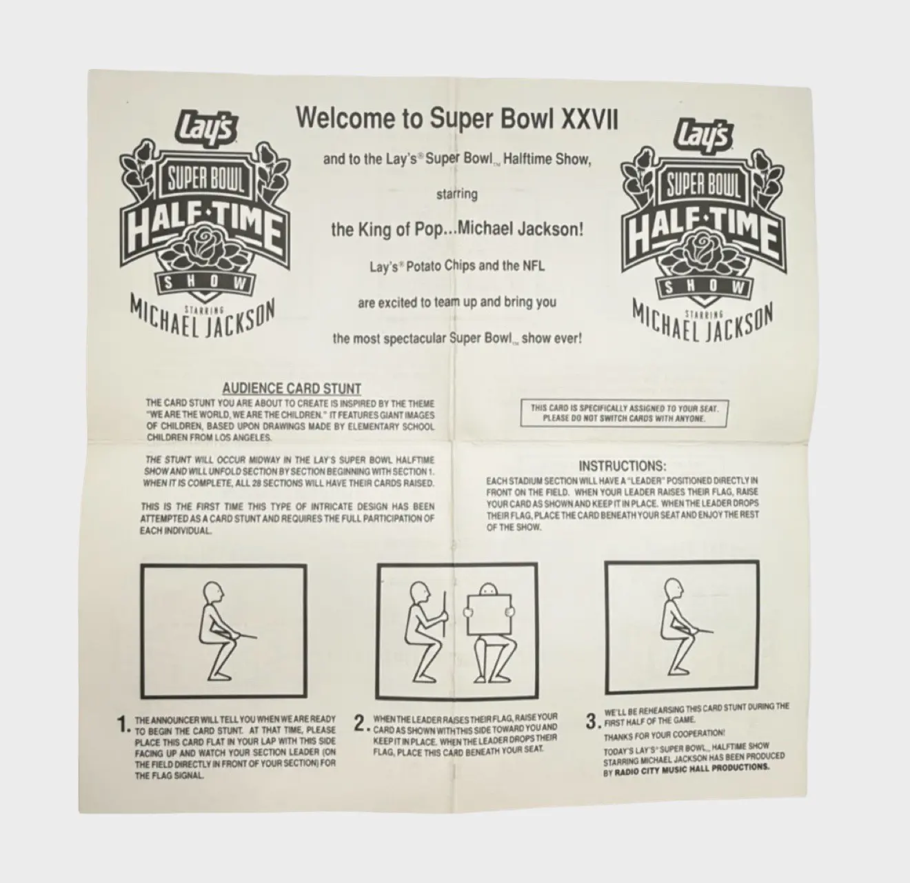 Michael Jackson Super Bowl XXVII Cushion with Yellow Half Time Stunt Card