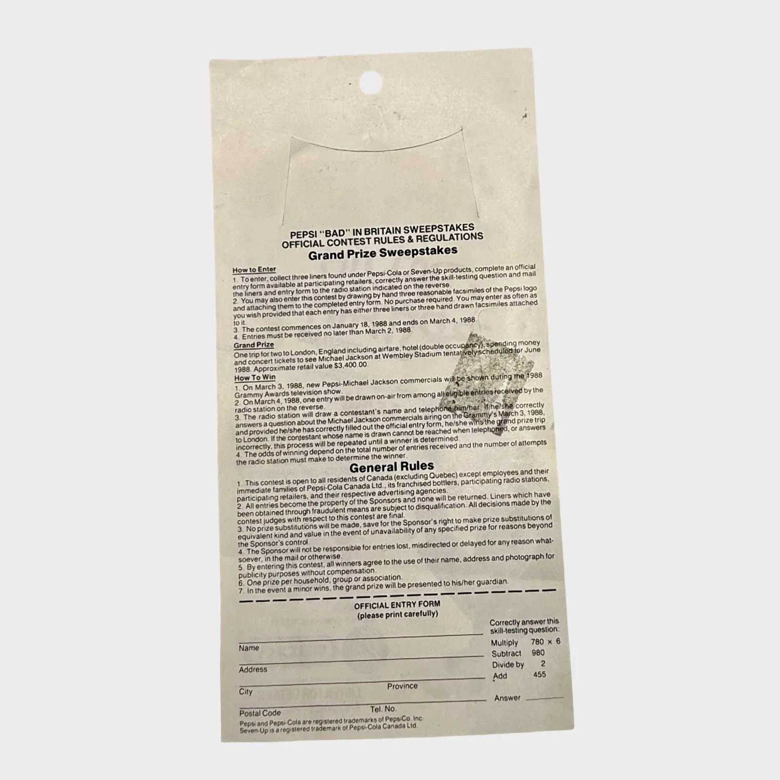 Michael Jackson BAD Canada Sweepstakes Flyer