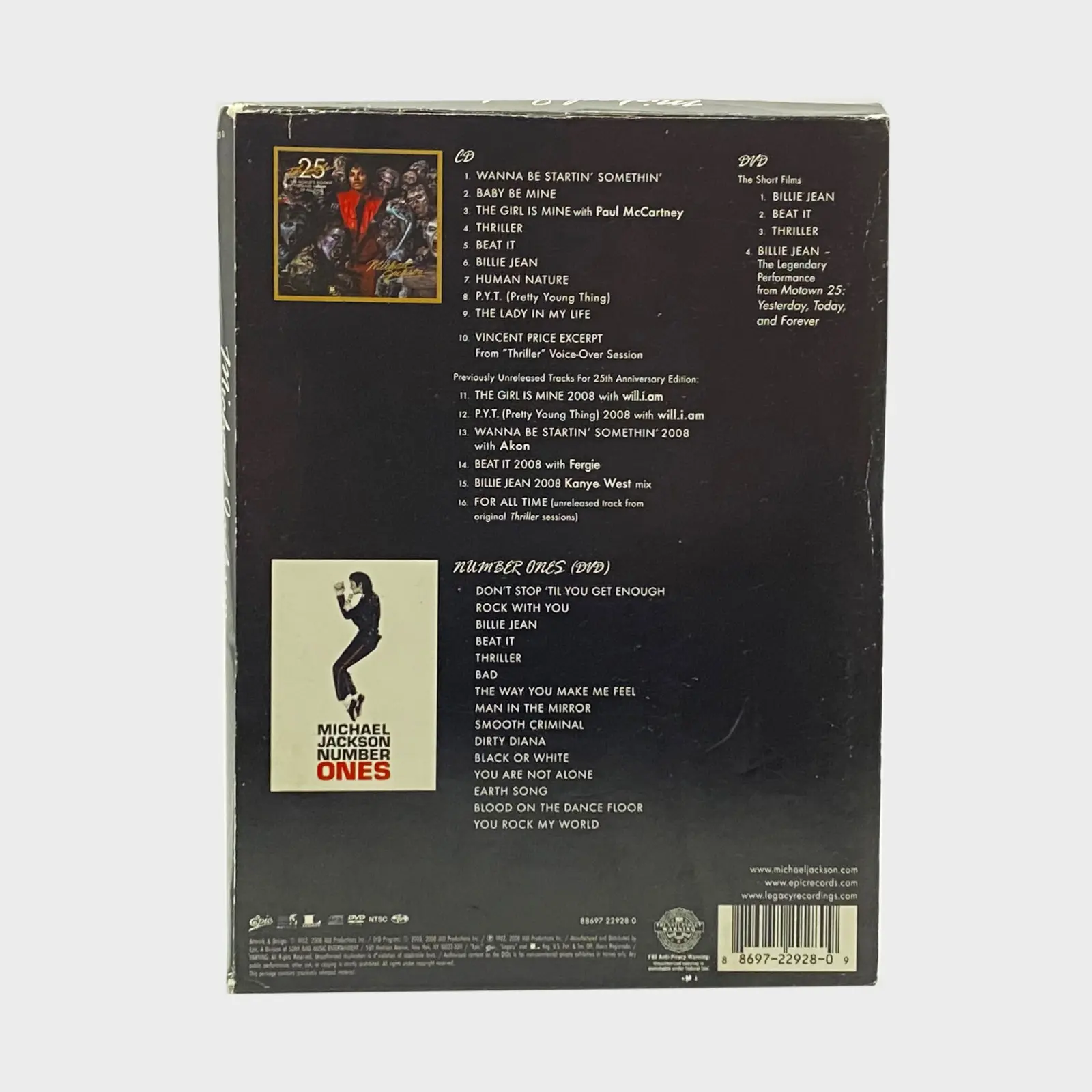 Description: Boxset includes ‘Thriller 25’ CD/DVD Set + ‘Number Ones’ DVD and was released exclusively at Walmart stores in USA